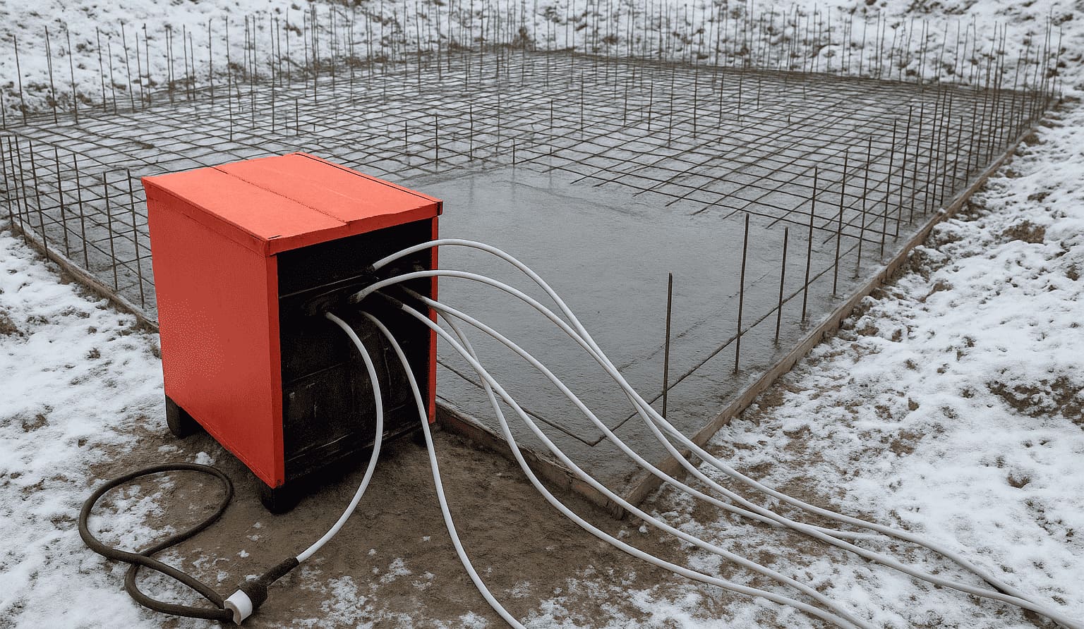 Правильно выполненный обогрев обеспечивает качественное затвердевание смеси даже при низких температурах воздуха ниже нуля. Соблюдение технологии укладки, схем подключения и температурного режима гарантирует получение прочной монолитной конструкции, соответствующей всем строительным нормам.