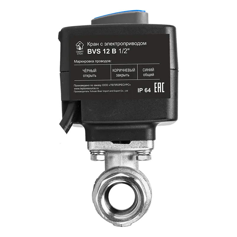Кран СМАРТСТОП BVS 12B — 100% совместим с нашими проводными и беспроводными моделями, готов к интеграции «из коробки».