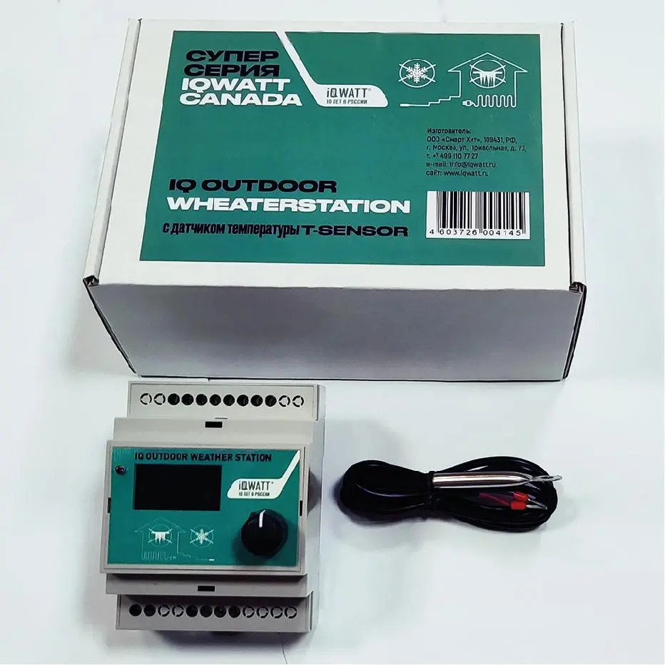 Метеостанция OUTDOOR WEATHERSTATION, которая предназначена для управления кабельными системами электрообогрева кровли или открытых площадей. Метеостанция комплектуется датчиком температуры наружного воздуха T-SENSOR. Дополнительно необходимо приобрести или датчик осадков поверхности кровли R-SENSOR или датчик осадков и температуры грунта G-SENSOR.