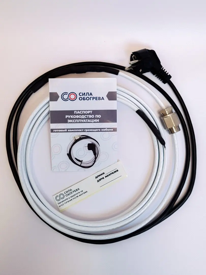 Готовый комплект саморегулирующегося греющего кабеля для водопровода в трубу с сальником "Сила Обогрева", 16 м