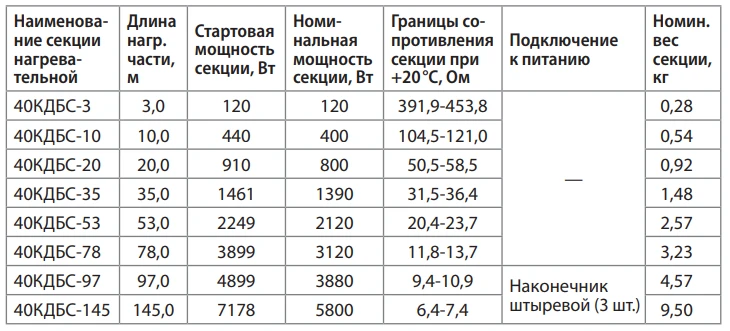 Секция нагревательная кабельная 40КДБС-20
