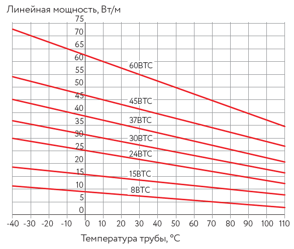 - Характеристики саморегулирования повышают безопасность и надежность кабеля. ВТС не будет перегреваться или перегорать, даже когда его отдельные участки накладываются друг на друга. Его тепловыделение саморегулируется в ответ на изменение температуры;