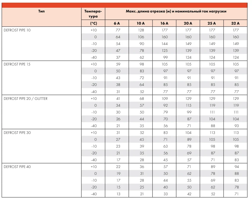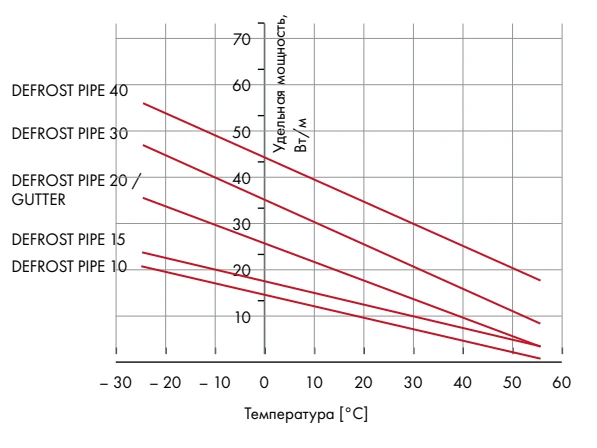 - Характеристики саморегулирования повышают безопасность и надежность кабеля. Defrost Pipe не будет перегреваться или перегорать, даже когда его отдельные участки накладываются друг на друга. Его тепловыделение саморегулируется в ответ на изменение температуры;