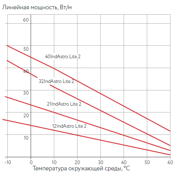 - Характеристики саморегулирования повышают безопасность и надежность кабеля. IndAstro Lite не будет перегреваться или перегорать, даже когда его отдельные участки накладываются друг на друга. Его тепловыделение саморегулируется в ответ на изменение температуры;