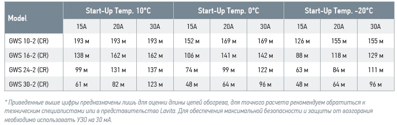 Максимальная длина нагревательной секции нагревательного кабеля LAVITA GWS рассчитывается, исходя из температуры включения и типа автоматического выключателя питания..webp)
