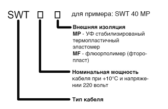 Номинальное тепловыделение в нормированных условиях для саморегулирующихся нагревательных кабелей SWT: