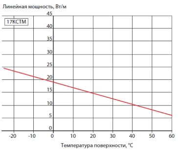Мощность кабеля КСТМ изменяется в зависимости от температуры окружающей среды.