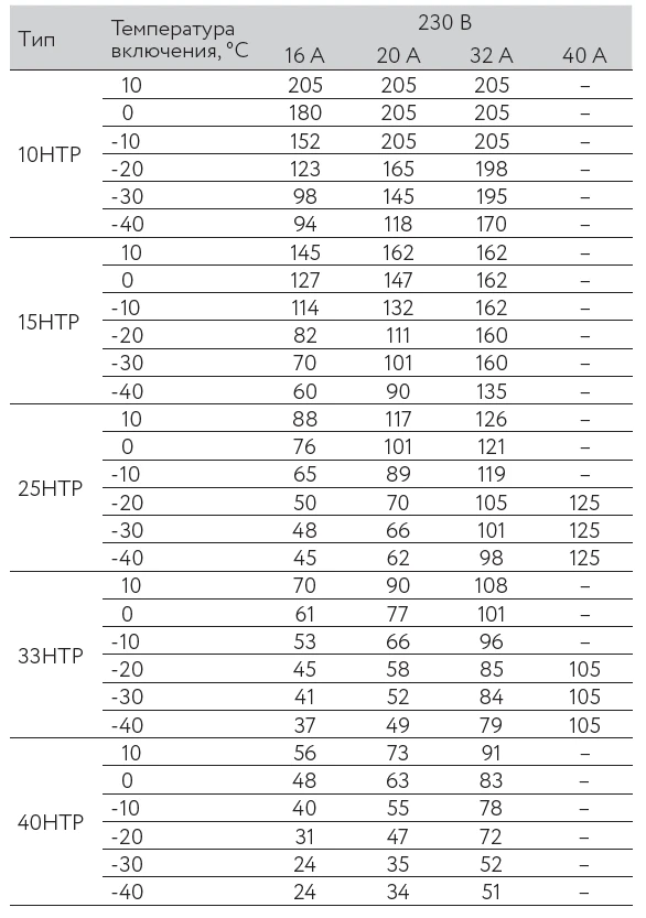 Максимальная длина нагревательной секции нагревательного кабеля ССТ НТР рассчитывается, исходя из температуры включения и типа автоматического выключателя питания: