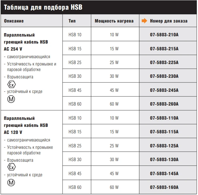Саморегулирующийся греющий кабель Bartec HSB мощностью 60 Вт/м., высокотемпературный, предназначен промышленного обогрев во взрывоопасных зонах производства. Нагревательный элемент HSB предназначен для использования в промышленности. В выключенном состоянии он способен выдерживать температуру до 190 °C, в рабочем - до 120°С. Защитная оболочка из фторполимера обеспечивает стойкость к воздействию кислот, щелочей, соли, морской воды, масел и других жидких углеводородных соединений. Гарантия составляет 5 лет с момента продажи.