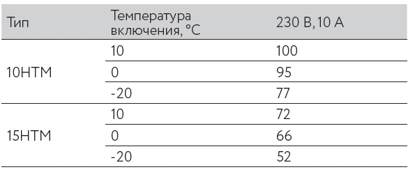 Максимальная длина нагревательной секции нагревательного кабеля ССТ НТМ рассчитывается, исходя из температуры включения и типа автоматического выключателя питания:.webp)