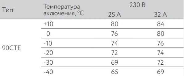 Максимальная длина нагревательной секции нагревательного кабеля ССТ ВТС рассчитывается, исходя из температуры включения и типа автоматического выключателя питания:
