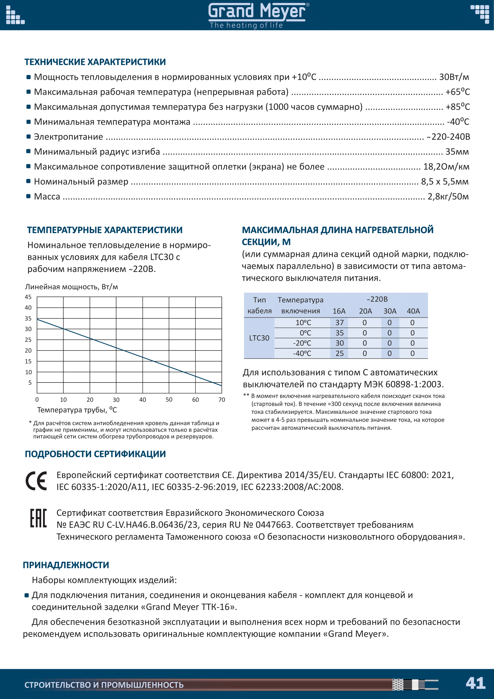 Саморегулирующийся нагревательный кабель Grand Meyer LTC30