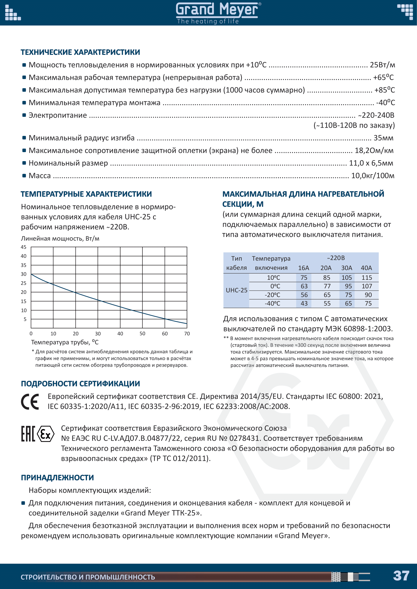 Саморегулирующийся нагревательный кабель Grand Meyer UHC-25