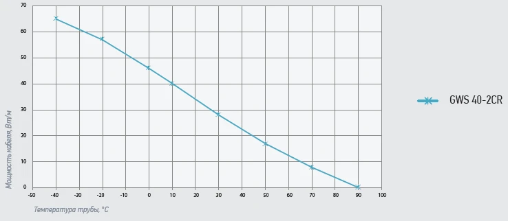 Мощность кабеля LAVITA GWS изменяется в зависимости от температуры окружающей среды.