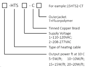 Структура кабеля 60HTS-2CT состоит из двух изолированных проводников, заключенных в саморегулирующуюся матрицу. Температура окружающей среды влияет на сопротивление матрицы, и это дает кабелю возможность самостоятельно изменять уровень тепла в каждой точке своей длины.