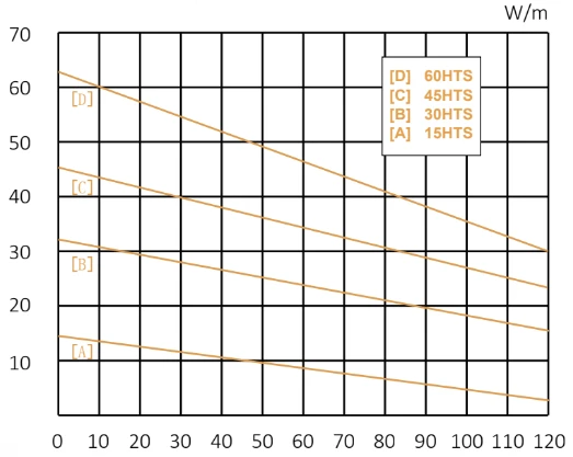 Мощность кабеля изменяется в зависимости от температуры окружающей среды.