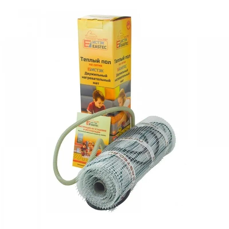 EASTEC ECM — 3,0 – это эргономичный, удобный и безопасный в использовании теплый пол на сетке мощностью 480 Вт и площадью обогрева 3,0 м2. Представленный комплект состоит из нагревательного мата, гофры и инструкции по монтажу и эксплуатации. Двухжильный кабельный теплый пол на сетке от компании Eastec монтируется в слой плиточного клея, толщина которого зависит от того, как будут использоваться теплые полы.