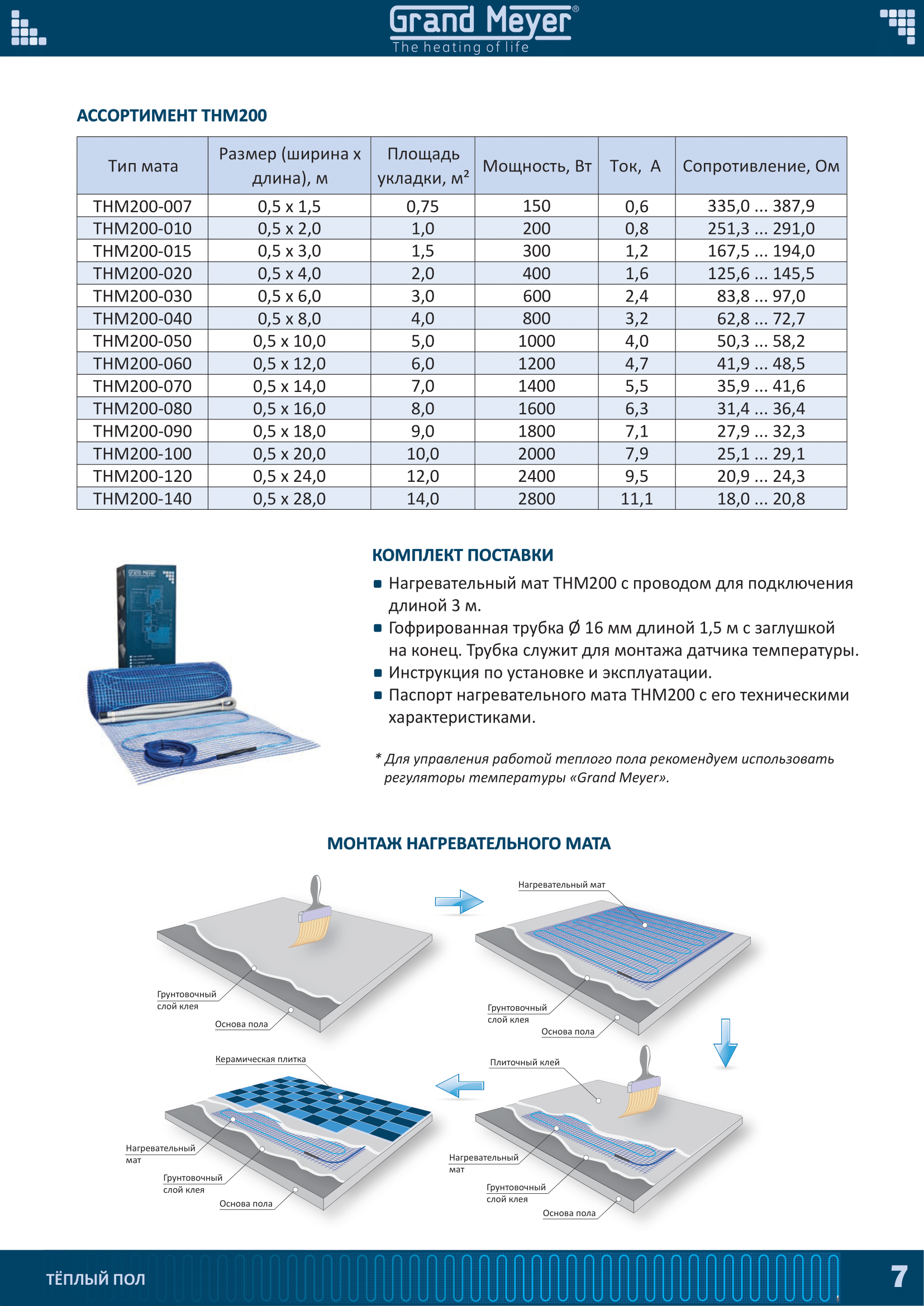 Теплый пол Grand Meyer THM200-070 (нагревательный мат)